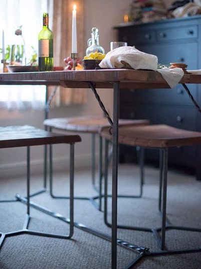 The twist effect in the steel was a simple yet subtle design feature that tied in with the waxed wood table top.